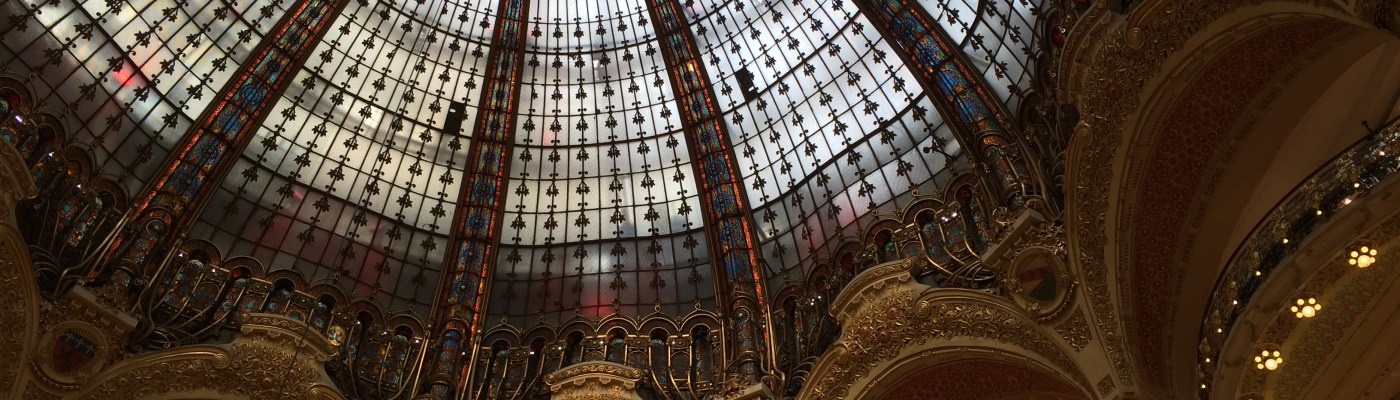 Die Kundinnen erscheinen mir äußerst kaufwillig. Eifrig wird geschaut, verglichen, diskutiert, werden Taschen geöffnet, geschlossen und ‚anprobiert‘. An der Kasse von GUCCI ist sogar eine kleine Schlange entstanden. Die Galeries Lafayette haben sich auf ihre Kunden eingestellt: fast jeder zweite Verkäufer ist ebenfalls Chinese, besser gesagt Chinesin; klar, so läuft die Beratung und das Verkaufsgespräch besser. Ich schlendere unter die zentrale Kuppel mit den prächtigen Galerien, die dem Kaufhaus ihren Namen verliehen haben; im Hintergrund läuft Justin Biebers ‚Sorry‘. Globalisierung und Kapitalismus vom Feinsten.