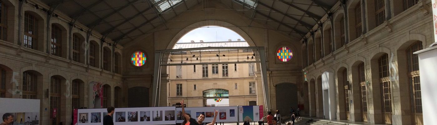 Das Centquatre ist das schönste Kulturzentrum, das ich kenne. Kulturzentrum, hinter diesem Wort, hinter dem vom verstaubten städtischen Sozialarbeiter-Jugendzentrum bis zum kreativen Hipster-StartUp-Schaffensnest irgendwie sehr viel stecken kann, verbirgt sich in diesem Fall ein ehemaliges Fabrikgebäude mit einer tollen Backsteinfassade und großzügigen, zum Teil bunt verglasten Fenstern. Unweit des Canal de l’Ourq und des Parc de la Villette im Pariser Norden gelegen, bietet es Platz für einen Buch- und einen Second-Hand-Laden, tourende Theater- und Tanzkompagnien, Ausstellungen (ob Foto oder moderne Kunstinstallationen) und vor allem: freie Fläche und Raum: ‚Espace Libre’*, dem die Pariser Bürger Leben einhauchen.